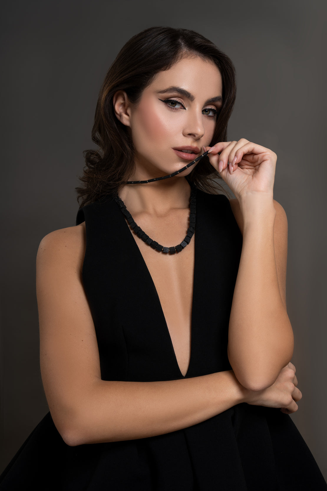 perle di pietra lavica si alternano a dettagli in argento dando vita a collane moderne e sofisticate.
