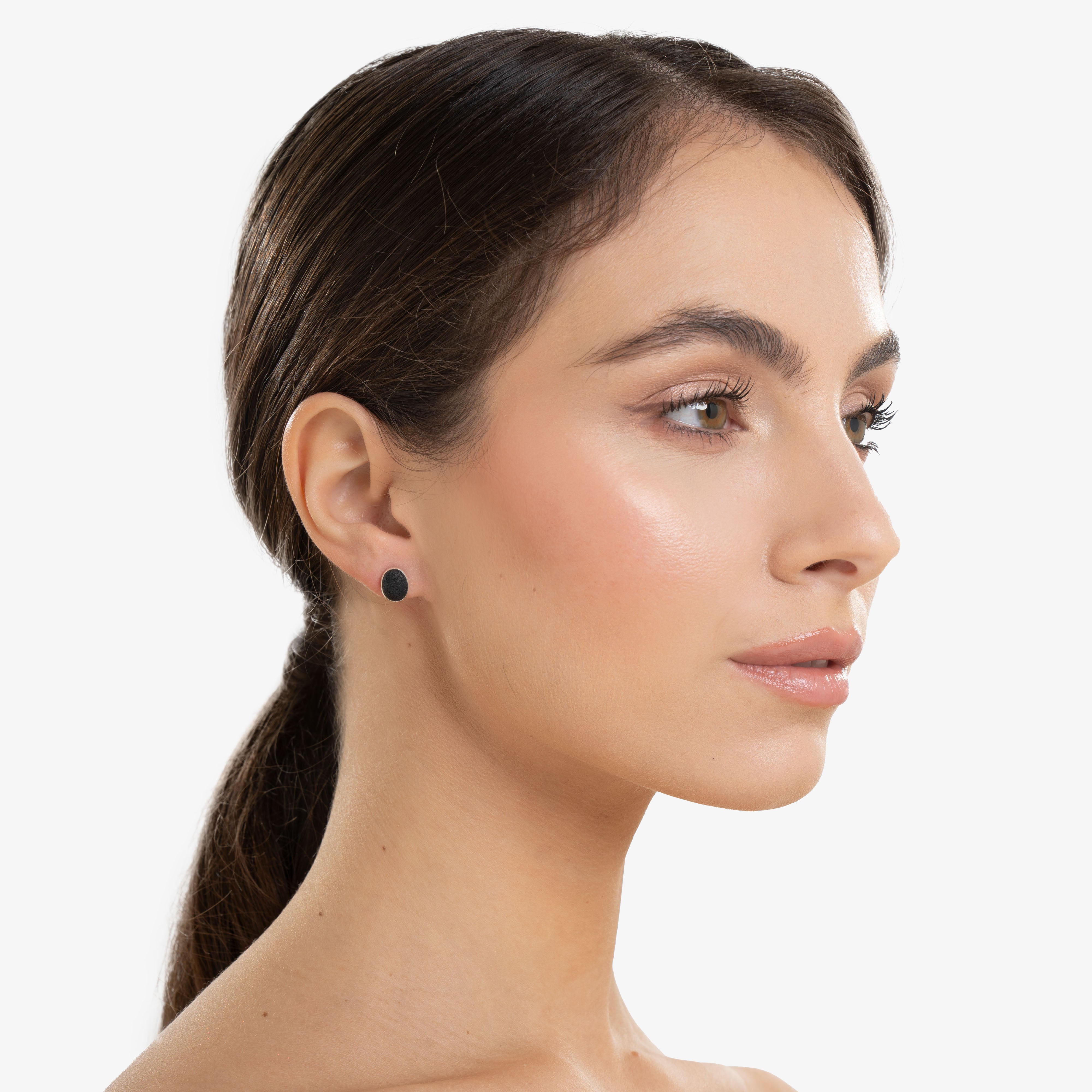 Gli orecchini Oplontis celebrano la forma pura e la potenza della materia vulcanica. Realizzati in pietra lavica naturale e argento 925, presentano una silhouette ovale e piena, pensata per aderire con naturalezza al lobo e accompagnare ogni gesto con sobria eleganza.