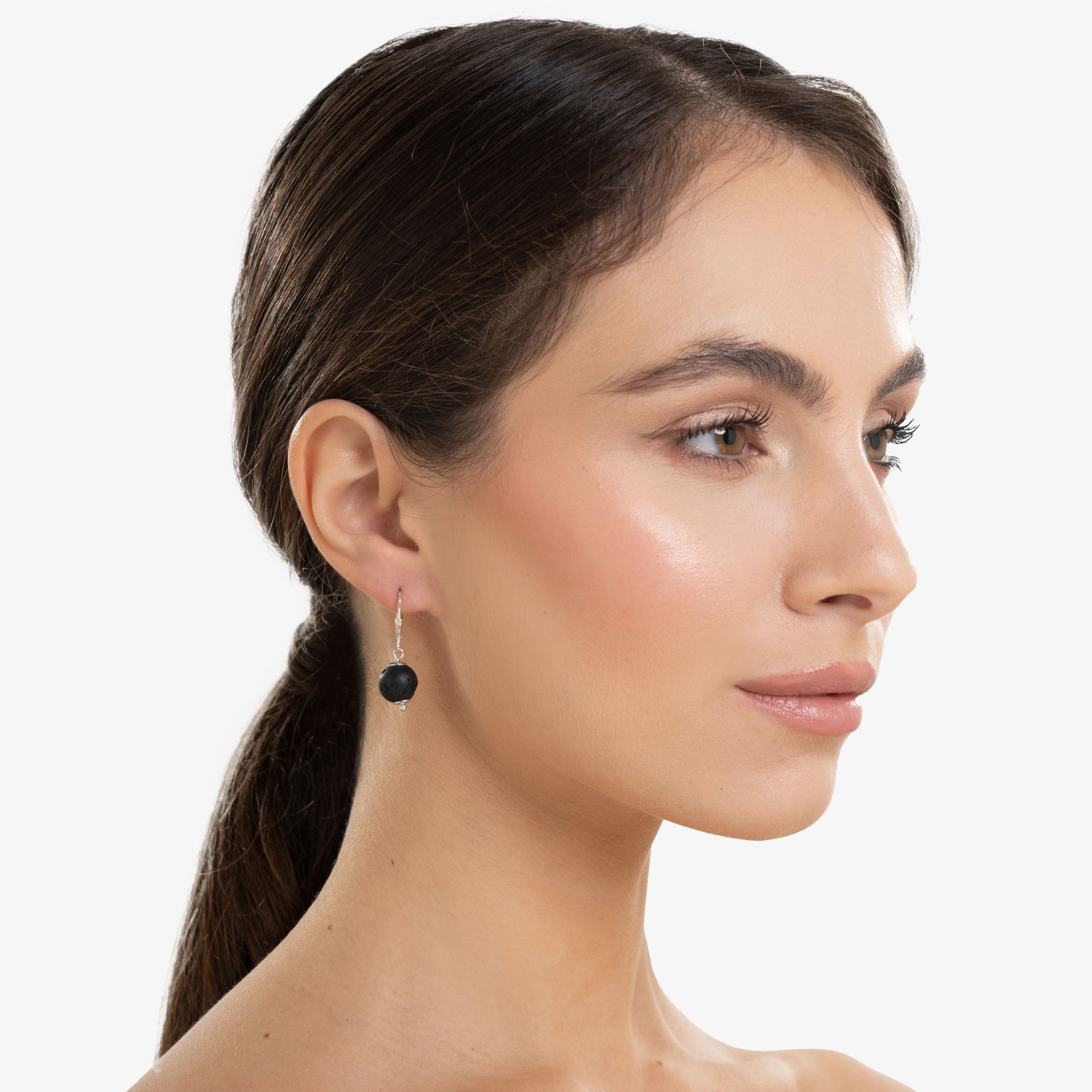 La sfera in pietra lavica naturale è sospesa da un gancio a monachina in argento 925, che unisce praticità e stile con un tocco senza tempo. L’effetto finale è discreto ma deciso, perfetto per valorizzare ogni look con un dettaglio sofisticato e autentico.