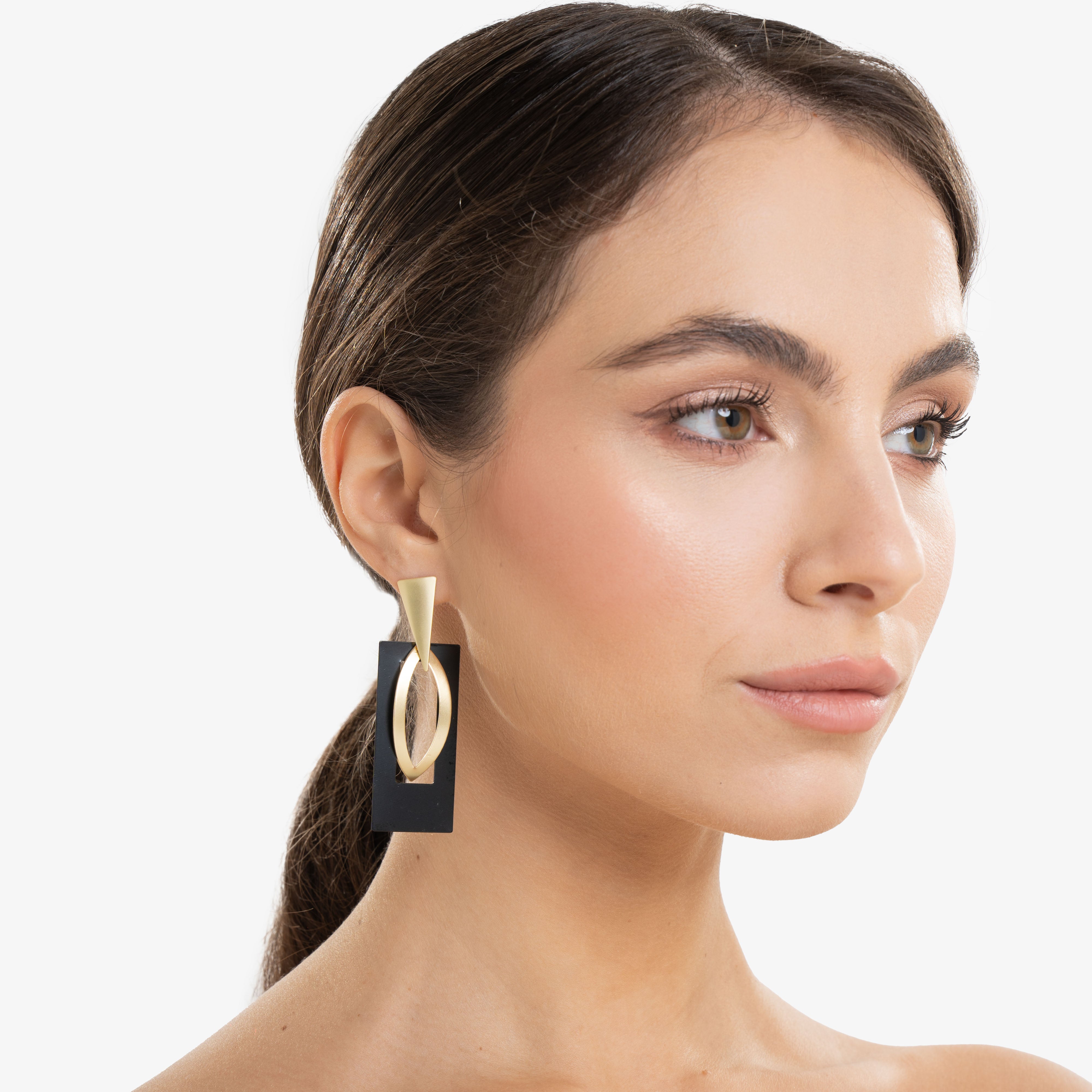 Ispirati alla profondità del cosmo e alla luce delle stelle, gli orecchini Astra rappresentano il perfetto equilibrio tra geometria e mistero. La loro forma ovale dorata incastonata in un rettangolo nero richiama un occhio astrale, simbolo di visione e connessione con l’universo. Il contrasto tra l’oro satinato e il nero opaco dona un effetto elegante e magnetico, perfetto per chi ama accessori moderni e raffinati.