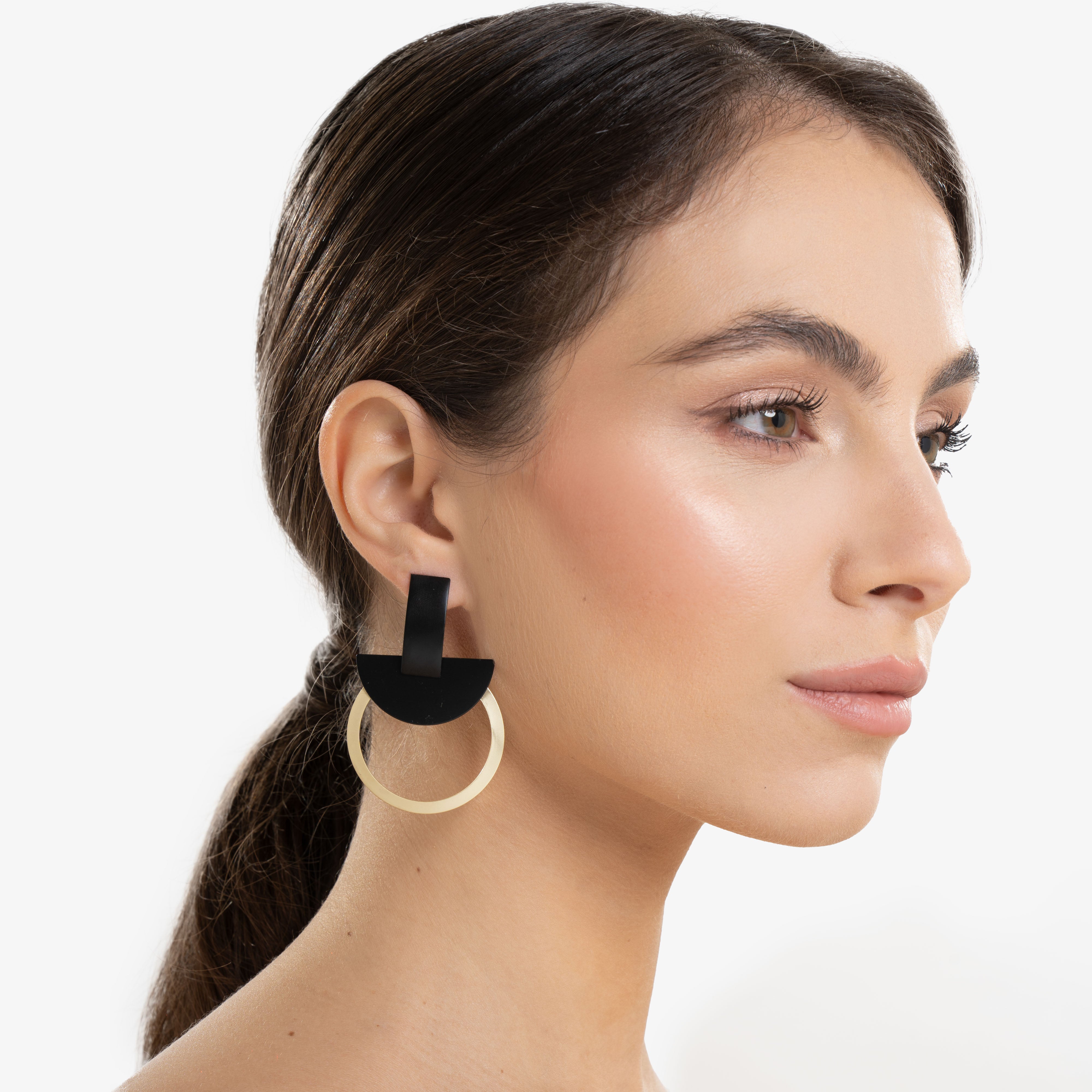 Ispirati all’aura luminosa che circonda la luna e il sole durante un’eclissi, gli orecchini Halo incarnano il perfetto equilibrio tra luce e ombra. Il loro design geometrico unisce un semicerchio nero opaco, simbolo della notte e del mistero, a un anello dorato sottile, che richiama il bagliore etereo di un alone solare o lunare nel cielo.
