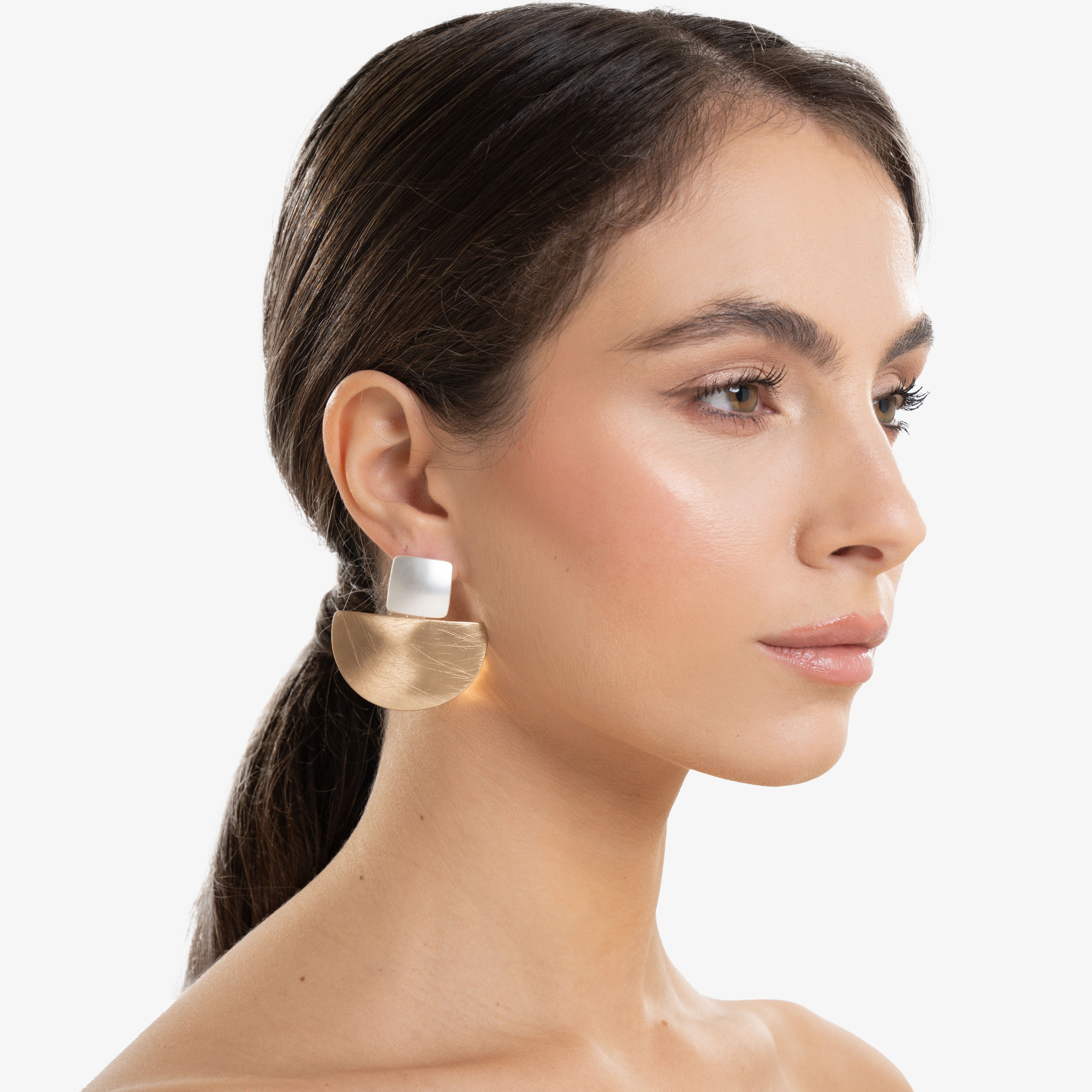Realizzati in lega di zinco anallergica, questi orecchini giocano con le texture e i riflessi, esaltando la luce con un effetto discreto ma sofisticato. La chiusura a lobo assicura una vestibilità stabile e confortevole, perfetta per essere indossata sia di giorno che di sera.