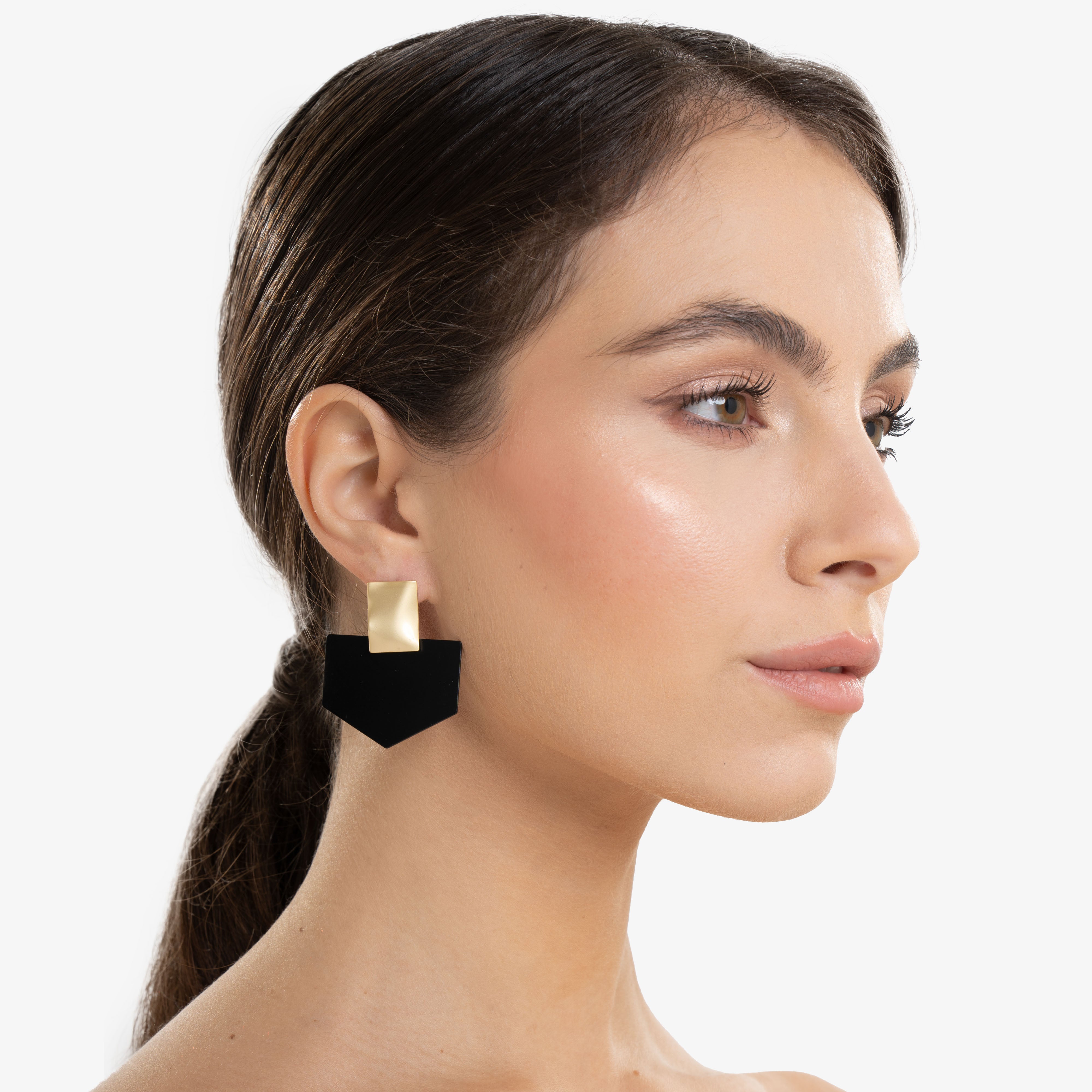 Forgiati a mano con maestria artigianale, sono realizzati in lega di zinco anallergica, leggera e resistente, ideale per garantire comfort senza rinunciare all’eleganza. Il contrasto tra l’oro satinato e il nero opaco crea un effetto visivo potente e sofisticato, perfetto per chi ama accessori dal design essenziale ma d’impatto.