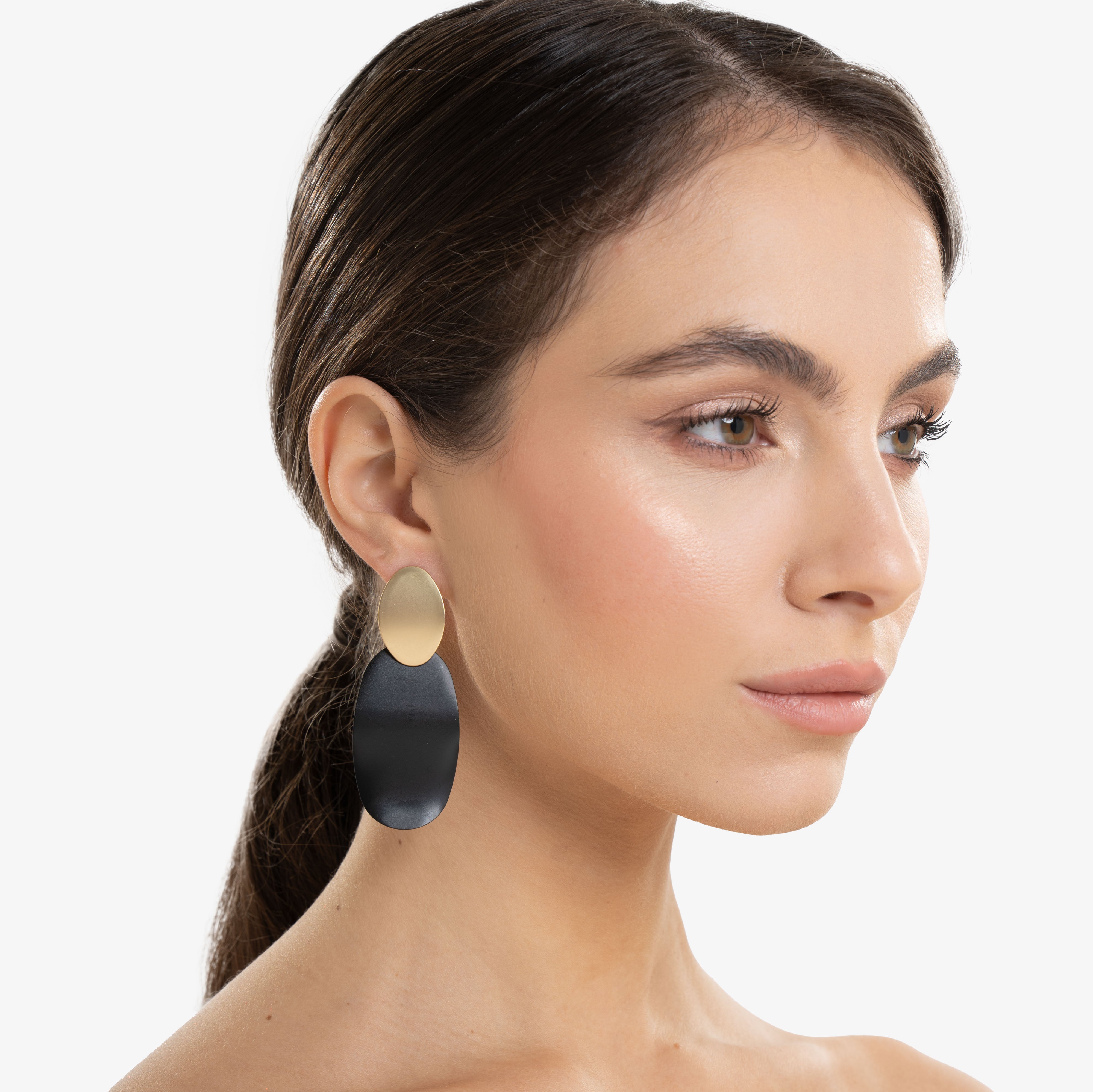 Ispirati alle maestose nebulose cosmiche, gli orecchini Nebula evocano il mistero e la bellezza delle galassie, dove luce e ombra si fondono in un equilibrio perfetto. Il loro design raffinato presenta una superficie nera ondulata, che richiama il movimento fluido dei corpi celesti nello spazio, mentre l’elemento dorato ovale dona un tocco di luminosità, come una stella che emerge dall’oscurità.