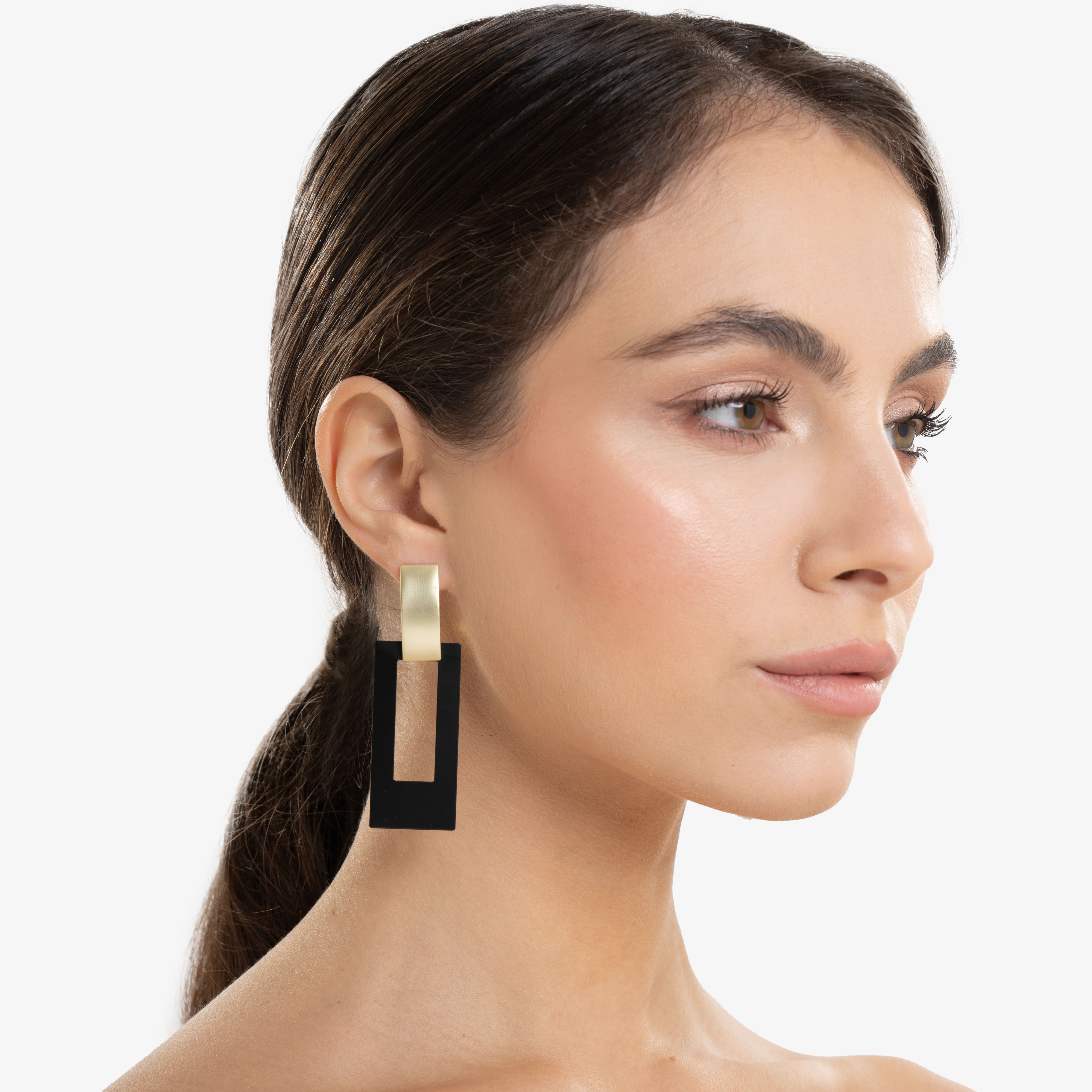 Realizzati a mano con maestria artigianale, sono forgiati in lega di zinco anallergica, leggera e resistente, perfetta per chi desidera un gioiello dallo stile contemporaneo e minimale senza rinunciare al comfort. Il contrasto tra il nero opaco e l’oro satinato dona un tocco sofisticato e versatile, ideale per ogni occasione.